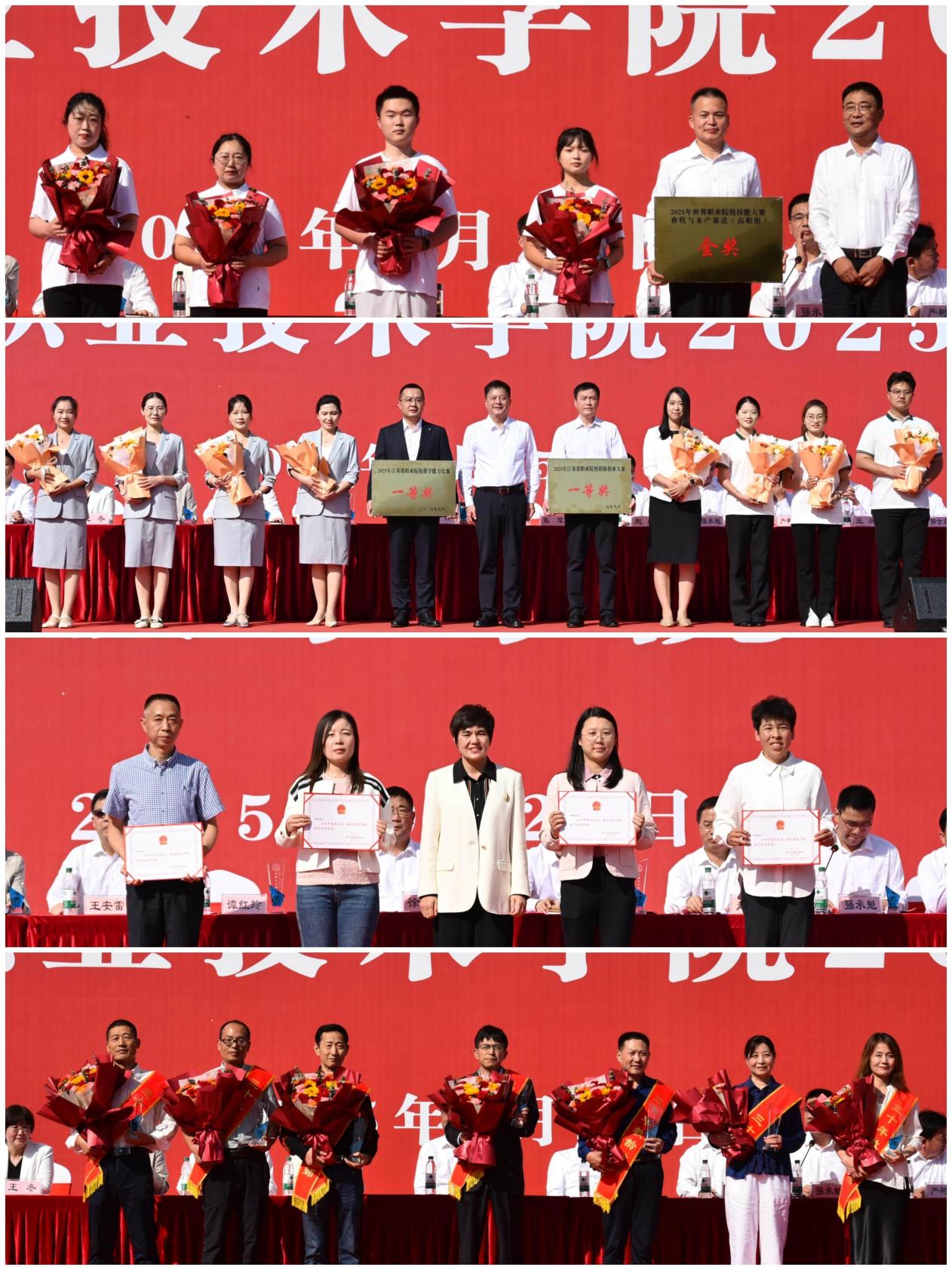 典礼上,学校对在2025年取得突出成绩的师生团队和个人进行了表彰。党委书记徐锋为荣获2025年世界职业院校技能大赛畜牧与水产赛道争夺赛(高职组)金奖的动物工程学院团队颁奖;党委副书记、校长张军为2025年江苏省职业院校教学能力比赛一等奖的医学护理学院团队、2025年江苏省职业院校创新创业大赛一等奖的农林工程学院团队颁奖;党委副书记谭红玲为记功奖励教师代表颁发荣誉。党委委员、副校长赵虎宣读了大赛表彰决定,党委委员、副校长王安雷宣读了记功奖励决定,党委委员、纪委书记刘颖宣读了30年教龄教师表彰决定。30年教龄教师代表上台接受了荣誉奖章、证书和学生代表献花。